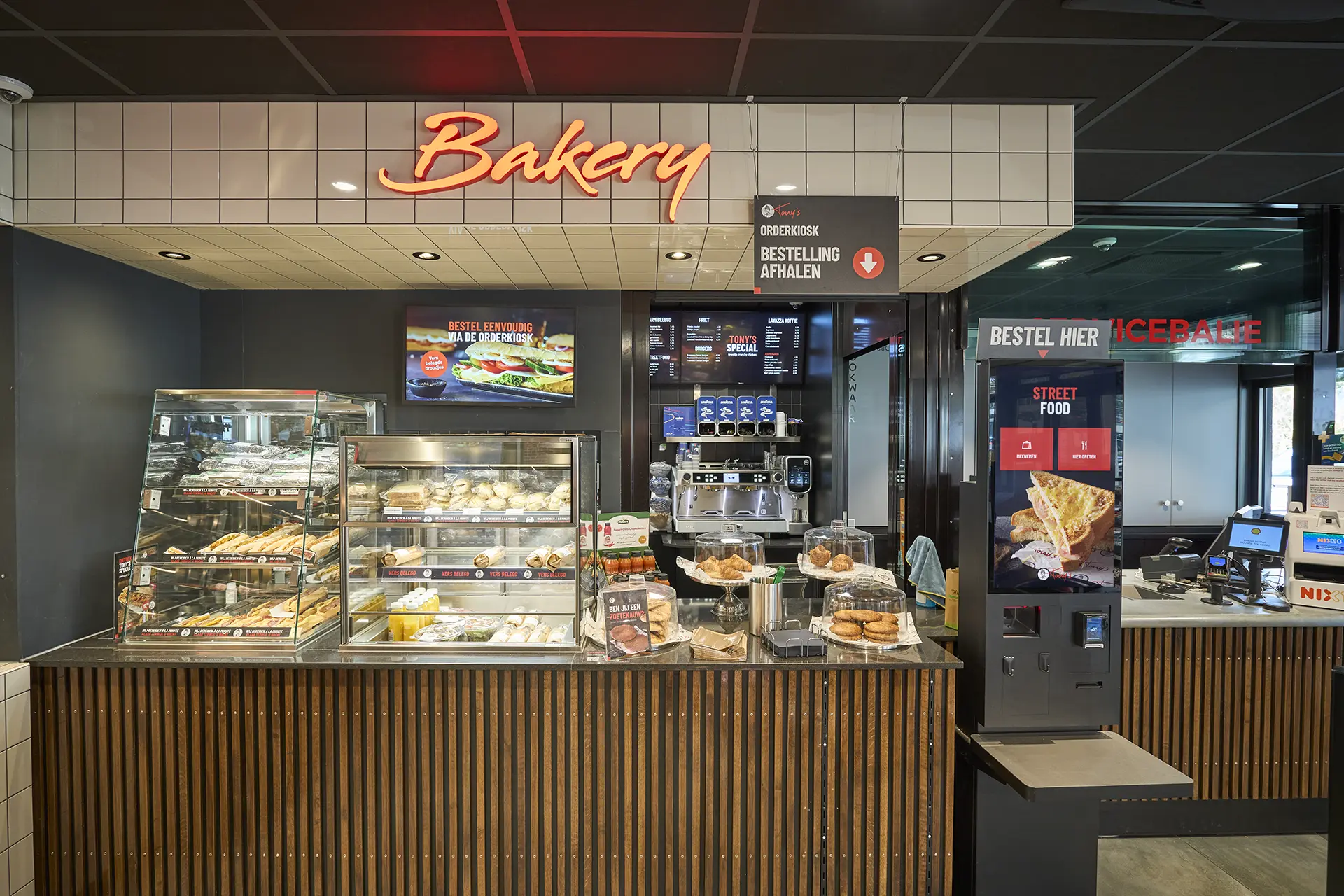 De counter moest altijd actuele prijzen tonen, duidelijk onderscheid maken tussen dagdelen en acties, en direct gekoppeld zijn aan de backoffice. Tegelijk moest de content on-brand blijven en schaalbaar zijn voor meerdere locaties.